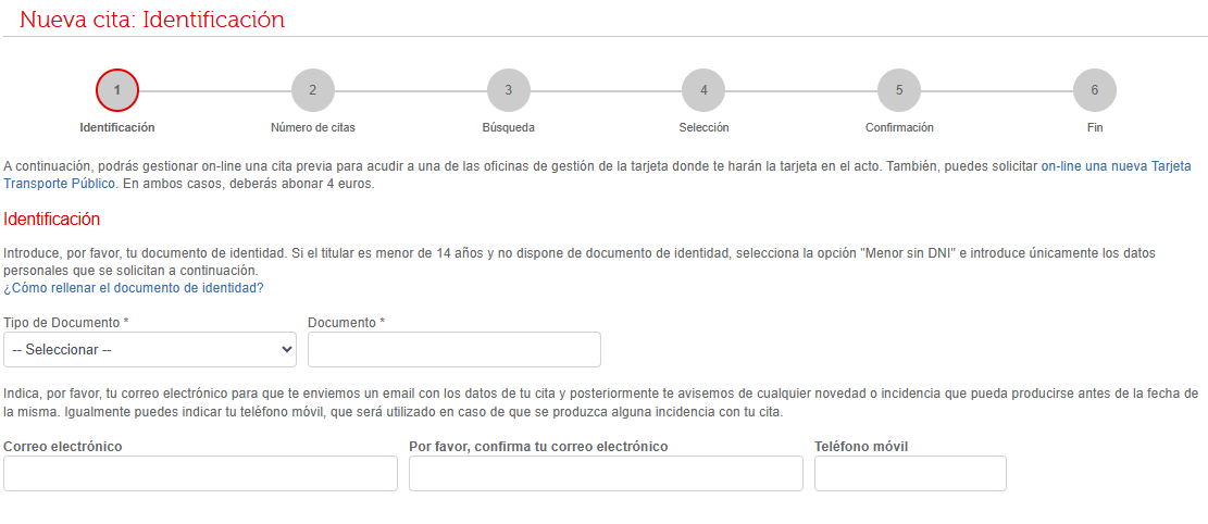 ①マドリード交通の公式サイトにアクセス✨ https://webttp.comunidad.madrid/CRTM-ABONOS/cita.aspx