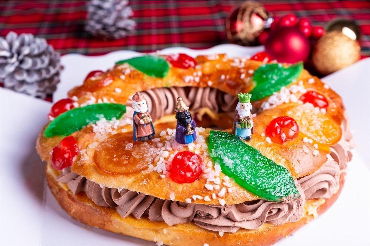 「Roscón de Reyes」は丸い形でフルーツが飾られた特別なパンです。